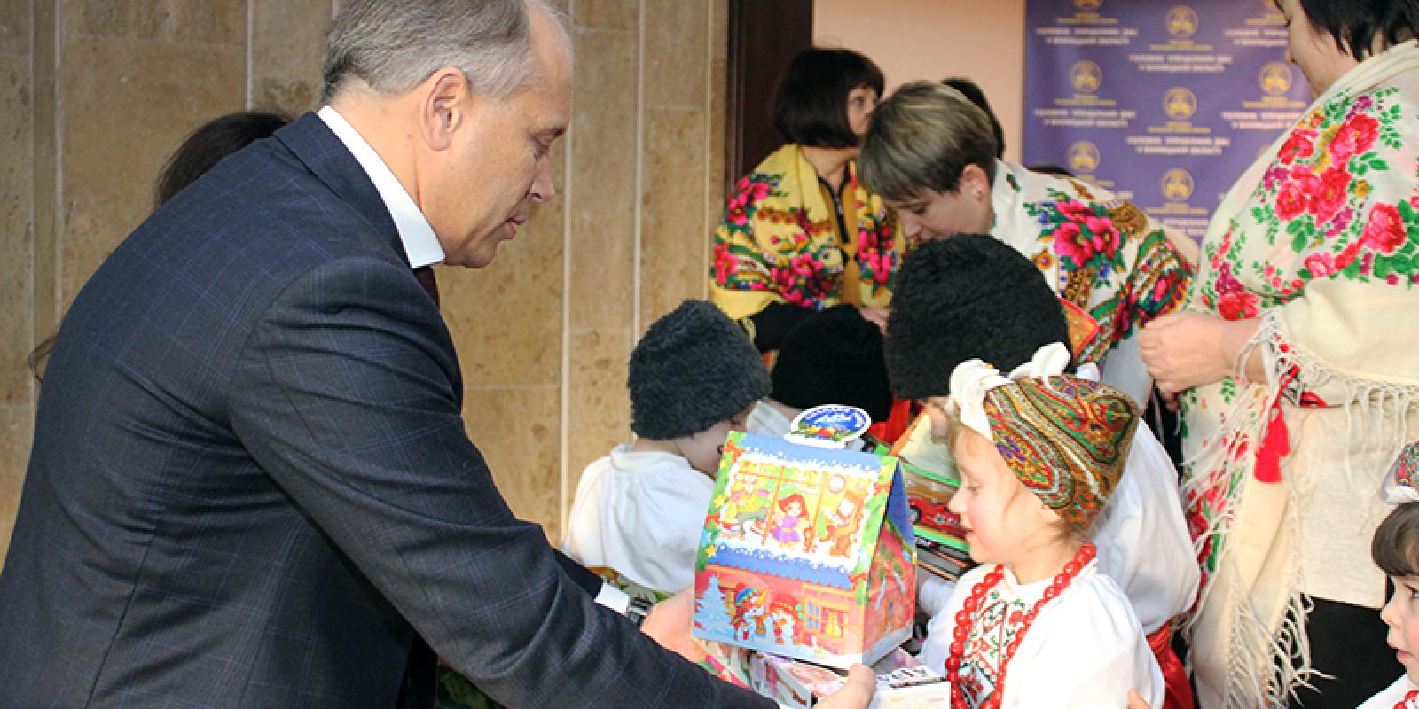 Вдячні господарі не забарилися зі подарунками. Очільник фіскальної служби Вінниччини Руслан Осмоловський обдарував кожного маленького артиста іграшками, солодощами та книжечками. А решта присутніх керівників і працівників фіскальної служби області та Вінницької митниці щедро наповнили святкову корзинку та чарівну скриньку цукерками та грошима.